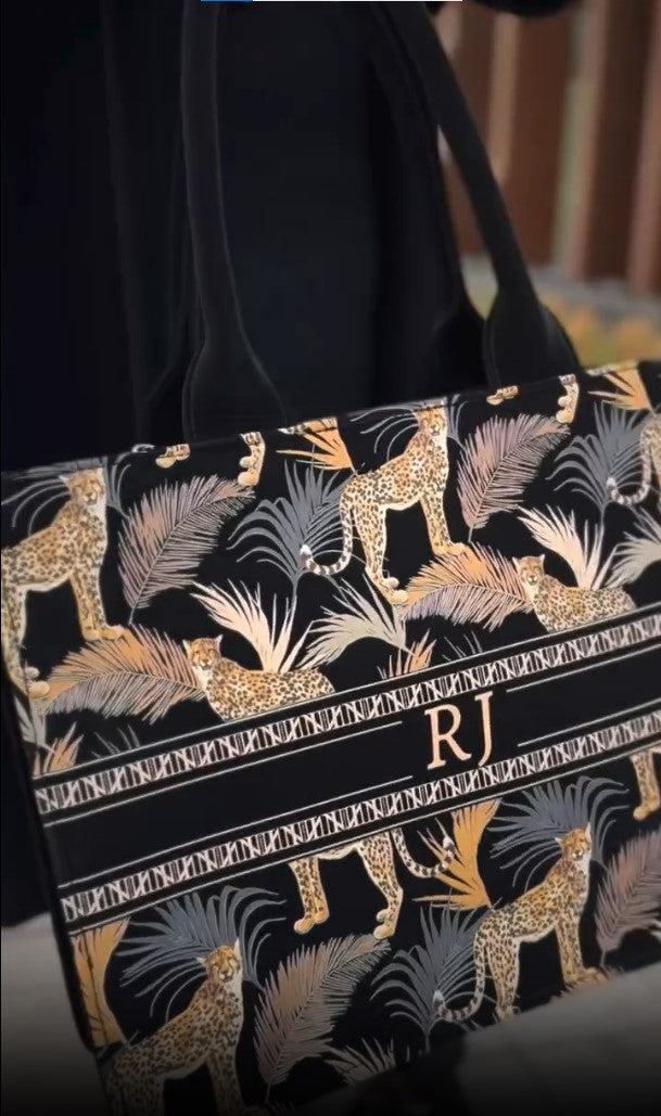 Elevate your style with the IN VOGUISH Leopard Designer Customized Tote Bag, a perfect blend of bold fashion and practical functionality. Featuring a striking leopard print design, this tote bag adds a touch of elegance and flair to your everyday look.